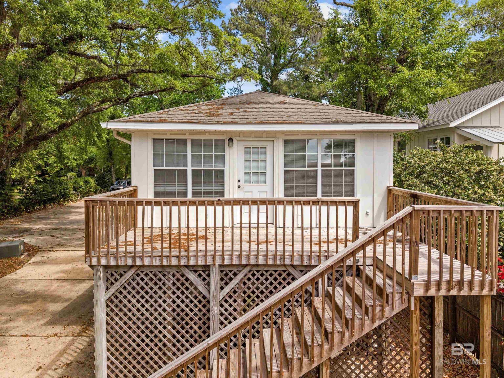 Welcome to an exceptional bayfront retreat in the heart of Point Clear, Alabama?where timeless charm meets breathtaking waterfront living. Ideally located just 1.5 miles south of the iconic Grand Hotel this wonderful family home offers the perfect blend of privacy, space, and coastal beauty.Situated on 75 feet of pristine Mobile Bay frontage, the property showcases stunning sunsets and uninterrupted water views. A newly constructed wharf invites you to fully enjoy life on the bay?whether boating, fishing, or simply soaking in the scenery.Built in 1993, the main residence features a thoughtfully designed floor plan with generously sized rooms and an effortless flow for both everyday living and entertaining. The primary suite is conveniently located on the main level, offering comfort and privacy. Expansive living spaces open toward the bay, filling the home with natural light and showcasing picturesque views throughout. A large waterfront deck provides the ideal setting for gatherings or quiet evenings overlooking the water.Upstairs, you'll find two bedrooms, two full baths, and a spacious recreation room, along with two additional flexible rooms perfect for bunk spaces, offices, or guest accommodations?tailored to fit your family's needs.Adding to the property's appeal is a detached garage apartment/guest quarters, complete with a living area, bedroom, bathroom, and kitchenette?ideal for hosting family and friends or creating a private retreat.This is a rare opportunity to own a true bayfront family compound in one of the Gulf Coast's most desirable locations. With summer just around the corner, there's no better time to experience all that Point Clear has to offer. Buyer to verify all information during due diligence.