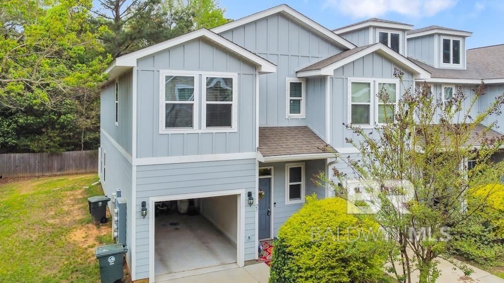 Do you want to live in Old Towne Daphne, but it's too expensive? Welcome to Villas of Saint Charles, a gated community one mile from Old Towne Daphne?where comfort, space, and convenience come together. This Gold Fortified townhome offers 2018 construction just minutes from Target, dining, and top-rated schools. This end unit has three extra windows and is one of only two units that back up to a wooded buffer on two sides. Step inside to discover a functional and inviting layout with 9-foot ceilings and crown molding on the main floor, great for living and entertaining. The kitchen offers soft-close cabinetry and ample workspace, with stainless appliances and granite countertops making meal prep easy and enjoyable. With two bathrooms upstairs, the bedrooms provide comfortable retreats, and the master suite offers plenty of space with a double vanity ensuite. Outside, you'll find plenty of space to enjoy the outdoors in the wrap-around yard, great for private barbeques or outdoor games. The property offers a ring doorbell, smart thermostat, upstairs laundry with machines that convey, and a one car garage with additional outside parking for a second vehicle. With its convenient location, charming setting, and room to make it your own, this property is a fantastic opportunity to live near Old Towne Daphne. Storm panels for all windows and Hardie Board construction. HOA fee $225 covers external insurance, community pool, hot tub, clubhouse, pest control, free pressure washing and landscaping-no lawn work! Curbside garbage pickup and curbside recycle available. Buyer to verify all information during due diligence.